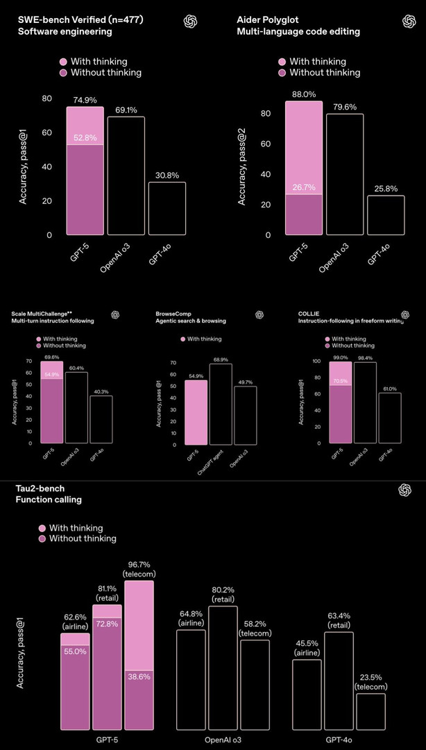 - GPT-5:在可靠性、实用性、代码能力上设定了全新标准,软件工程将被彻底变革。