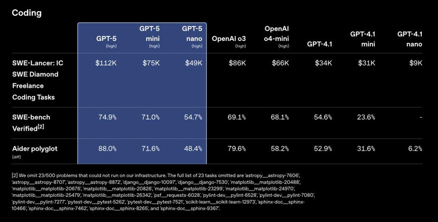GPT-5是我们迄今为止最强大的编程模型。在复杂前端生成和调试大型代码库方面,GPT-5表现尤为突出。
