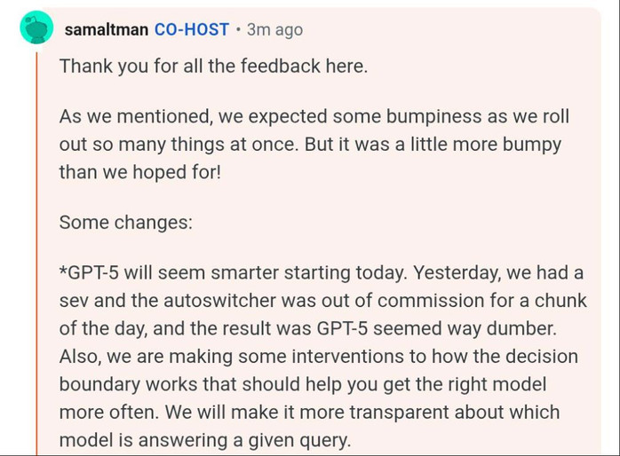 他表示,内部出现了严重故障(Sev级),自动切换系统无法工作,导致GPT-5表现得像降智一样。