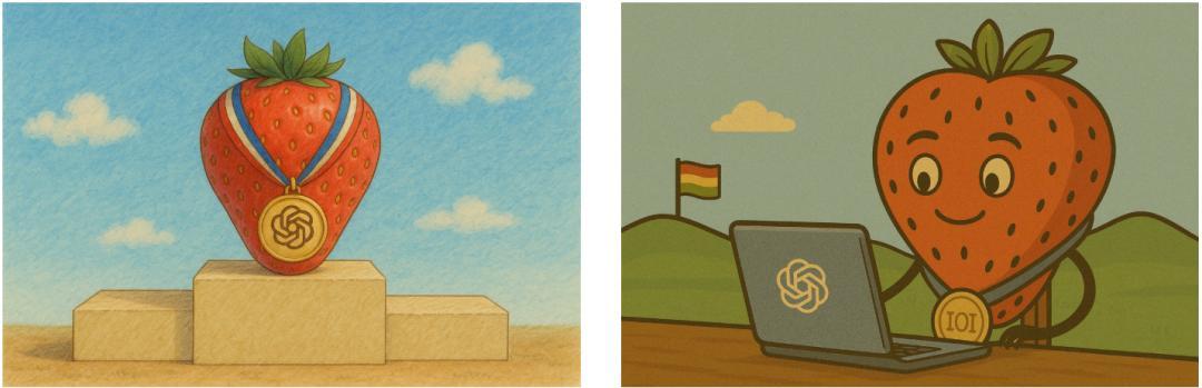 只不过这次的「草莓」不仅带上了IOI的金牌,而且更加的拟人,这个形象很有可能进化为OpenAI内部推理系统代表形象。