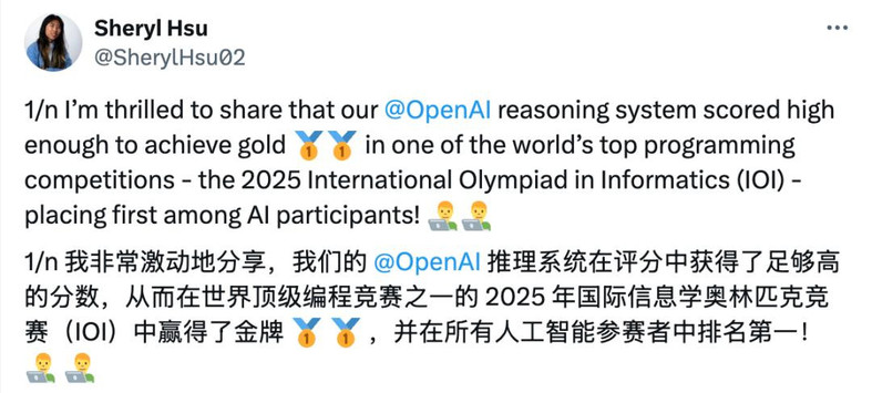 刚刚,OpenAI内部推理模型在获得IMO金牌后,又拿下了IOI金牌。