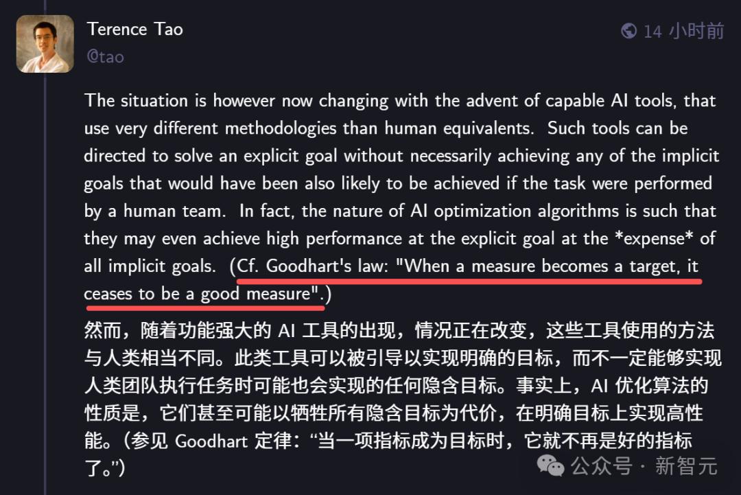 不幸的是,按照陶哲轩的洞见,AI——尤其是那些强大的优化算法——正是Goodhart定律最忠实、也是最极致的执行者。