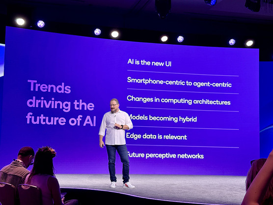 第二个趋势,是AI从手机为中心转向为以Agent为中心,高通会以此来构建自身的技术。AI智能体会给各类设备带来变化,用户可以跟智能体进行交互。