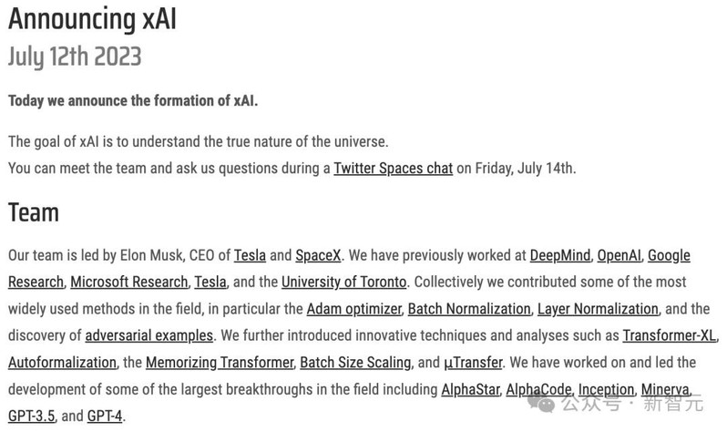 2023年7月13日,马斯克高调官宣xAI新公司成立,以探索宇宙本质为终极目标,打造一个能够理解宇宙的超级AI。