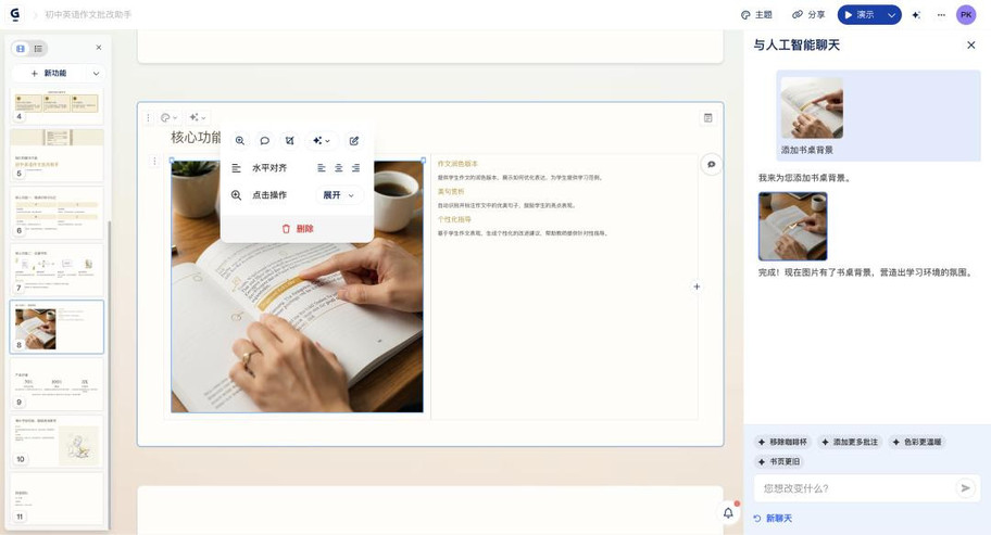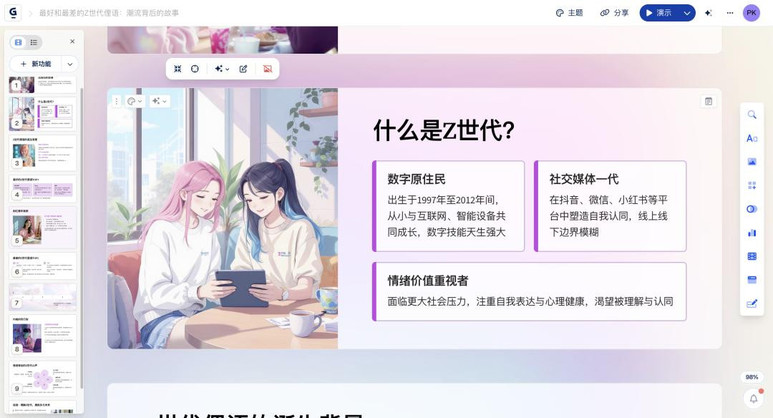 与微软的底层差异:PowerPoint的AI是“工具级辅助”,而Gamma的AI是“决策级协同”——会预判用户下一秒可能需要的版式调整(如添加数据来源注释)