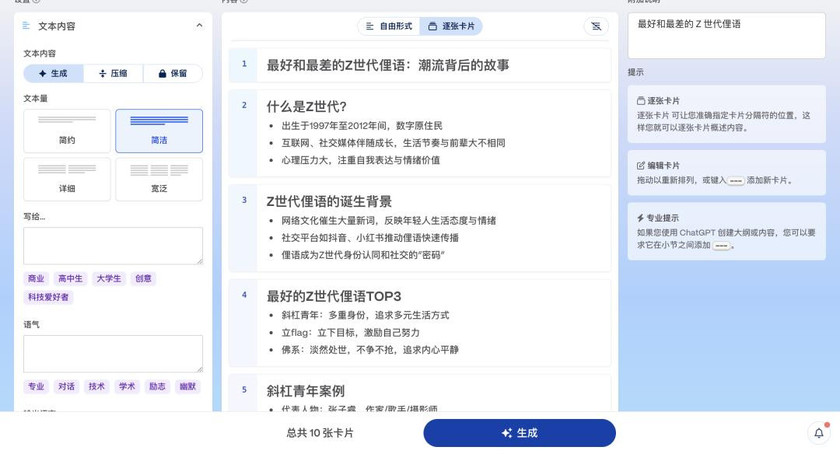 这里我选择的主题是随机roll的最好和最差的 Z 世代俚语,可以看到几乎不需要撰写什么提示词,那效果能好吗?