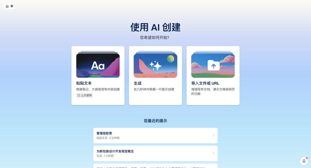 一键生成ppt,仅需1分钟:无论是总结还是保留内容的原汁原味,gamma都能一键秒出漂亮的演示文稿
