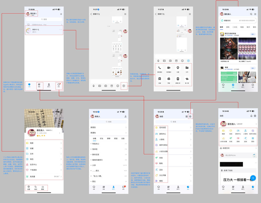 因此,未来优化方向应聚焦于真正的轻量化。例如:在首页去除频道入口,仅保留消息、联系人和动态三大核心模块;将状态切换简化为常用的几种选项;动态页则参照青少年模式,仅保留相册与说说等基础功能。同时减少非核心入口(如会员中心、每日打卡等),避免用户在信息过载中迷失。通过这种方式,可以在保证社交和通讯核心价值的同时,降低学习成本,提升中坚用户和怀旧用户的使用体验。