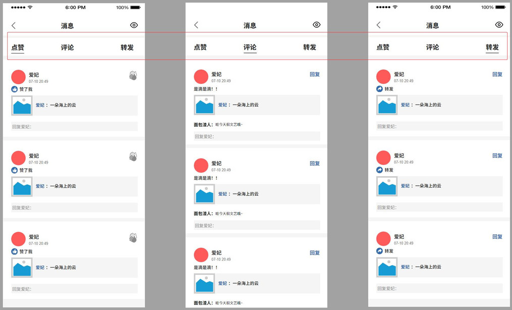 笔者建议对空间消息通知进行优化,将消息动态进行点赞、评论和转发的区分,设计导航栏且支持左右滑动直接翻页,用户可对每类互动进行精准回复或反馈,提升体验和使用效率。
