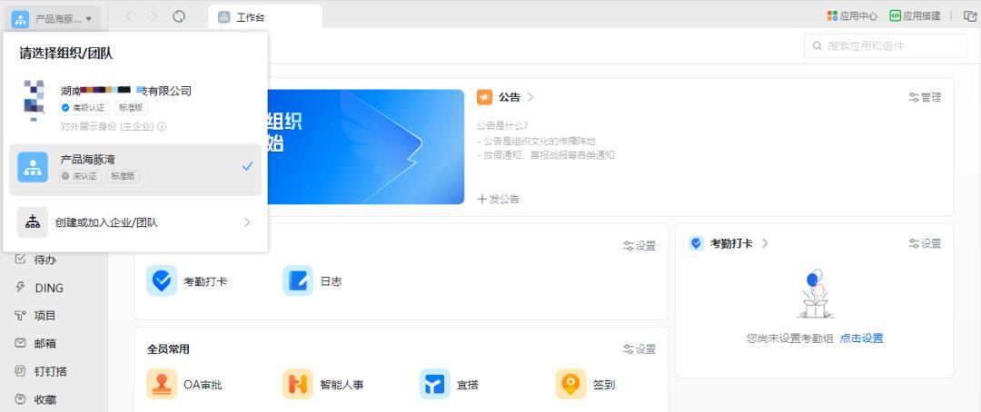这里的团队其实是有两种模式,一种是弱化的团队概念,即不需要主动创建团队,默认就是个人团队,可以直接邀请其他用户加入到个人团队,比如协作类的Teambition,可以在项目里直接邀请成员;另一种是强化的团队概念,需要用户主动创建团队,而且团队数据和个人数据是分离的,比如钉钉就是这么设计的。当然,这个和底层的数据设计有关,比如Teambition更多是项目协作,因此实际上邀请的是项目成员;而钉钉除了文档、沟通、云盘(即将下线个人版)少部分功能外,大部分功能都依赖于团队,因此要求创建团队才能使用很合理。
