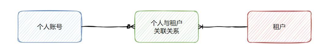 平台账号模式的用户账号信息其实是存在平台侧的,也就是登录需要先经过平台应用,具体简化的数据对象关系如下图所示。平台侧除了存储了个人账号信息外,还存储了个人与租户的关联关系,以便登录后能够查询到当前账号是哪些租户的成员,从而允许用户登录时选择租户,登录后可以在不同租户间切换。
