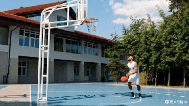 万相生成的视频中,球员弹跳、投篮的动作行云流水,篮球的运动轨迹也符合现实场景。