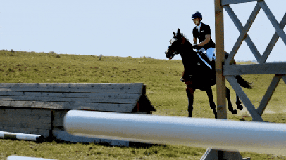 Prompt:体育摄影风格,骑手在场地障碍赛中引导马匹快速通过障碍物。骑手身着专业比赛服,头戴安全帽,表情专注而坚定,双手紧握缰绳,双腿夹紧马腹,与马匹完美配合。马匹腾空跃起,动作连贯且准确,四蹄有力地踏过每一个障碍物,保持速度和平衡。背景是自然的草地和蓝天,画面充满动感和紧张感。4K, 高清画质,动作完整。