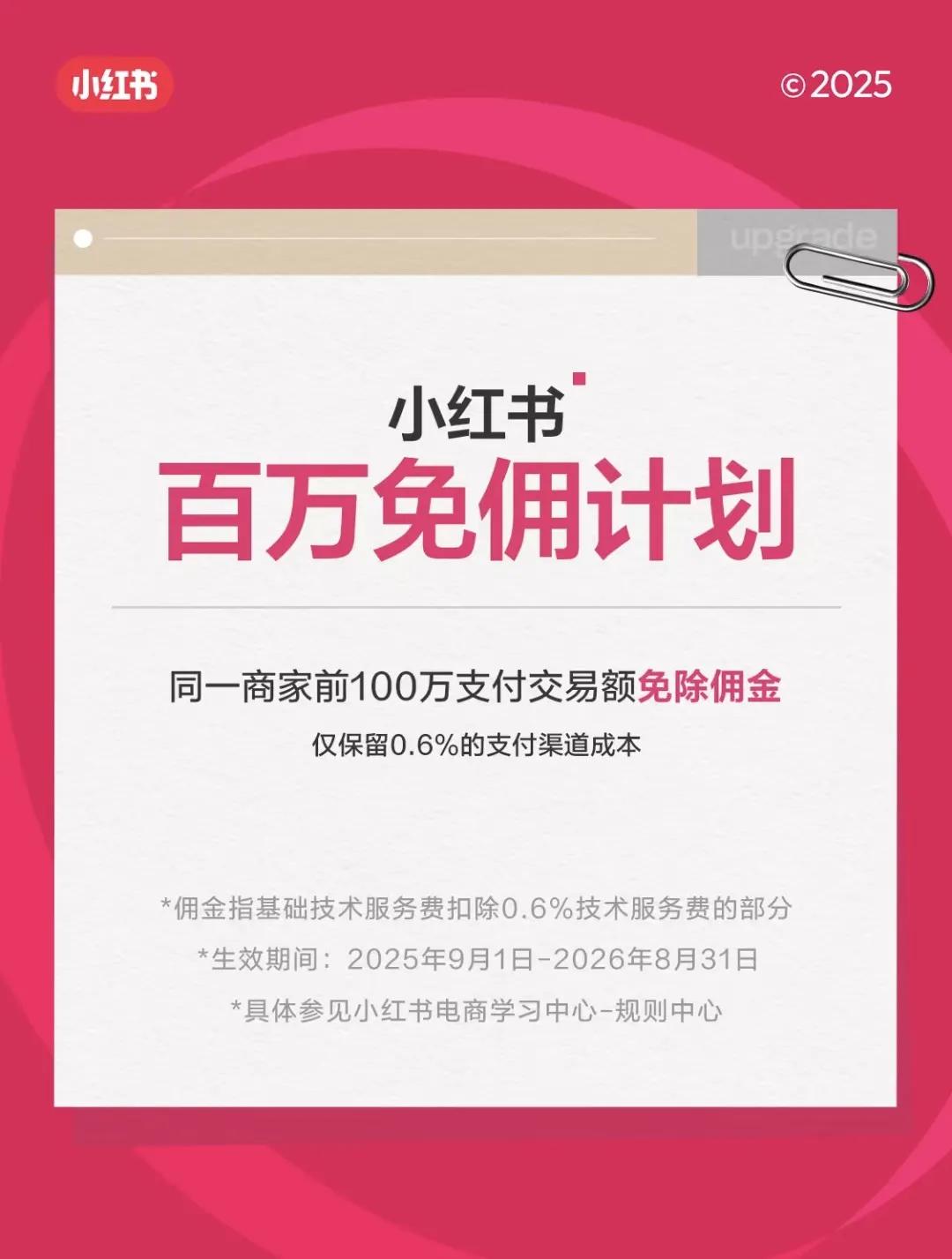 最新的动作是,今年8月底,小红书将6月上线的“友好市集”升级为平台一级入口,以“市集”版块放置于App底部导航栏,该页面集合了市集直播,买手橱窗、新品首发等频道。同时,小红书面向商家推出“百万免佣计划”,宣布未来一年内,对同一商家收到的前一百万交易额免除佣金,仅保留0.6%的支付渠道成本。随后在9月,小红书正式宣布,平台已接入淘宝天猫、京东、拼多多三方外链。