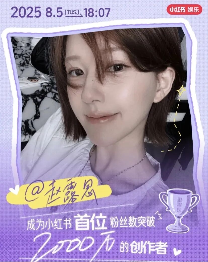 赵露思站内粉丝超2000万时,小红书官方发布战报