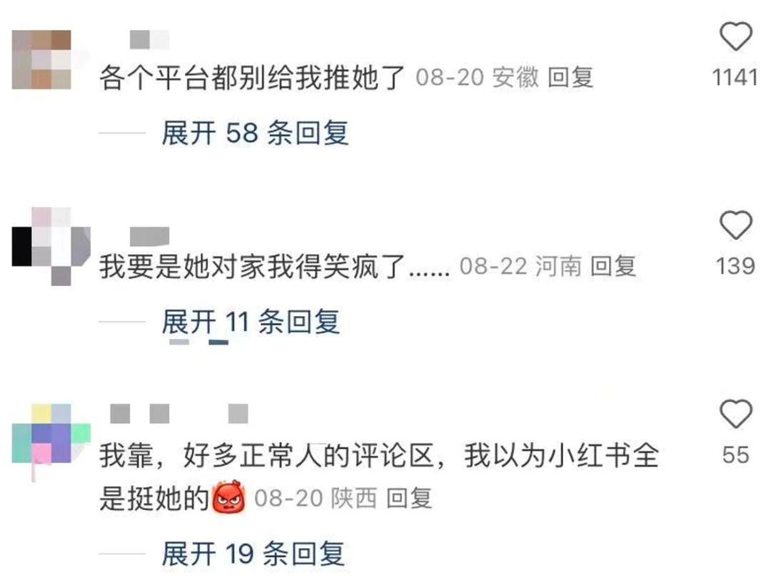 对于这种粗暴的打扰用户的行为,小红书用户的不满情绪水涨船高。甚至有用户在评论区直言:“各个平台都别给我推她了”。