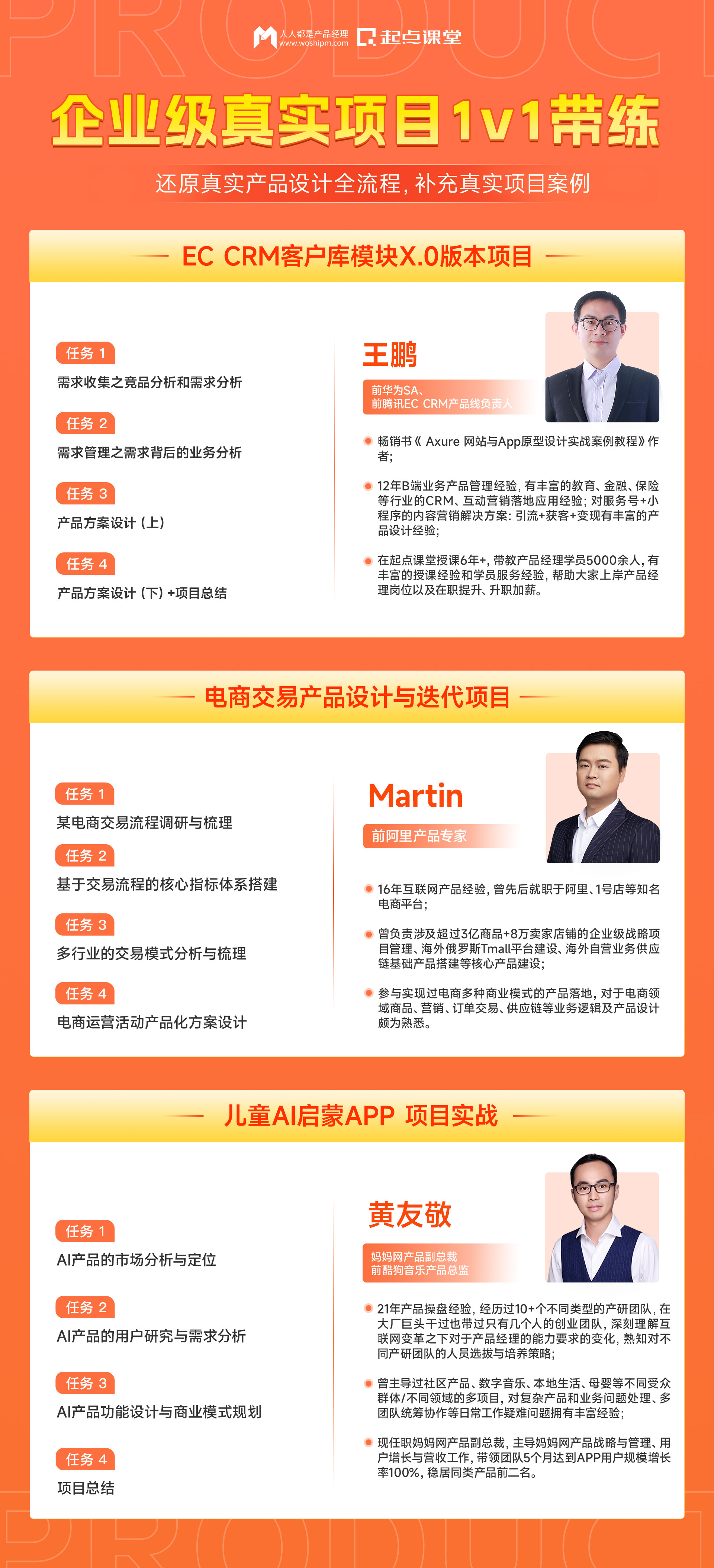 如果你苦恼0经验转岗产品求职难?野路子没人带,成长慢?推荐你来参加“人人都是产品经理&起点课堂”1年时间深度打磨的《产品私教陪跑实战营》,融合大厂产品经理能力体系,适用B端、C端、AI多业务场景,帮你系统提升AI时代的产品核心能力!
