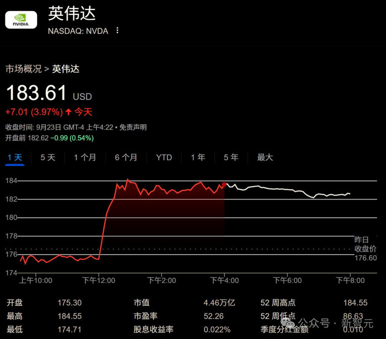 英伟达的股价今天也和甲骨文一样大涨了。