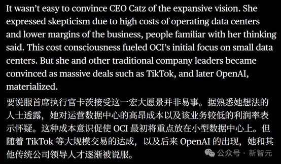 另一方面,据彭博社此前报道,在OCI早期,由于运营数据中心成本高、利润率较低,Catz对云基础设施业务持怀疑态度。