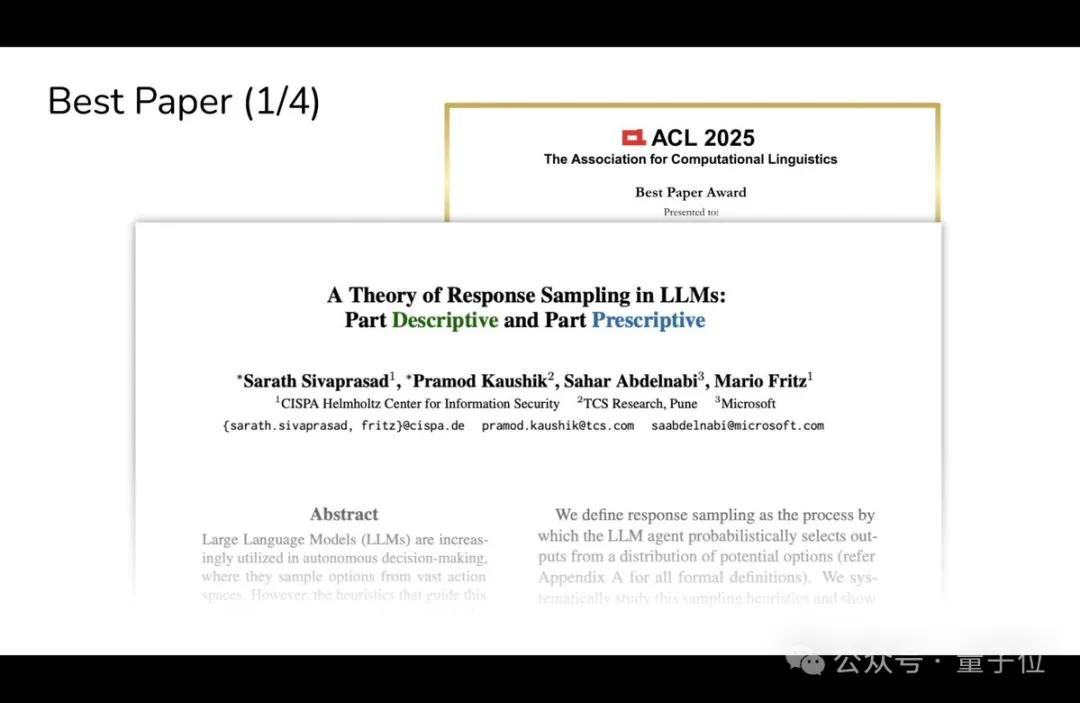 亥姆霍兹信息安全中心等团队的《A Theory of Response Sampling in LLMs: Part Descriptive and Part Prescriptive》。