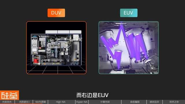 大家经常听到的“EUV”、“DUV”光刻机,是按照使用光源的波长来分类的。上一代光刻机采用深紫外光(DUV),如今最尖端的使用了极紫外光(EUV)。