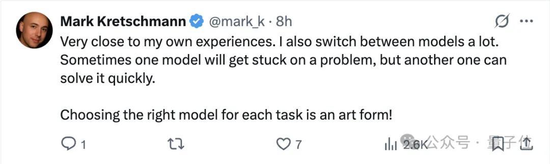 有网友表示:有时候一个模型卡在某个问题上,另一个模型却能快速解决。