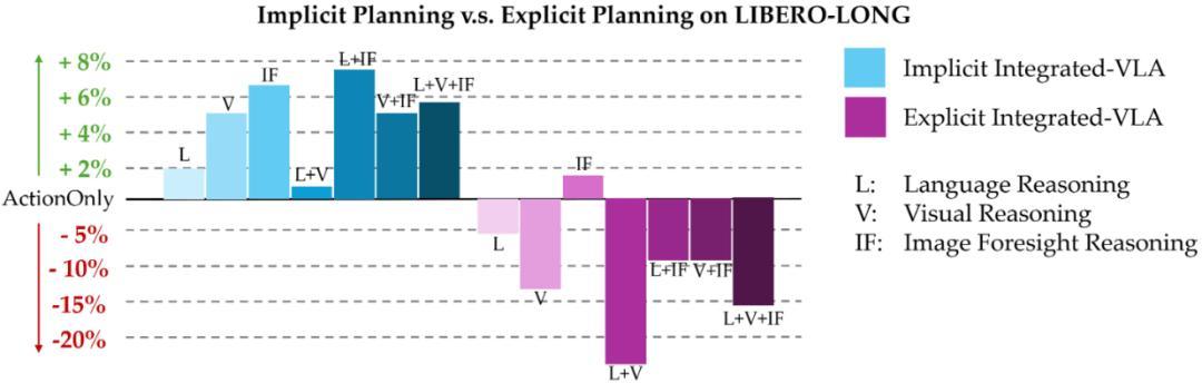 图 12 隐式和显式的 Integrated-VLA 性能对比