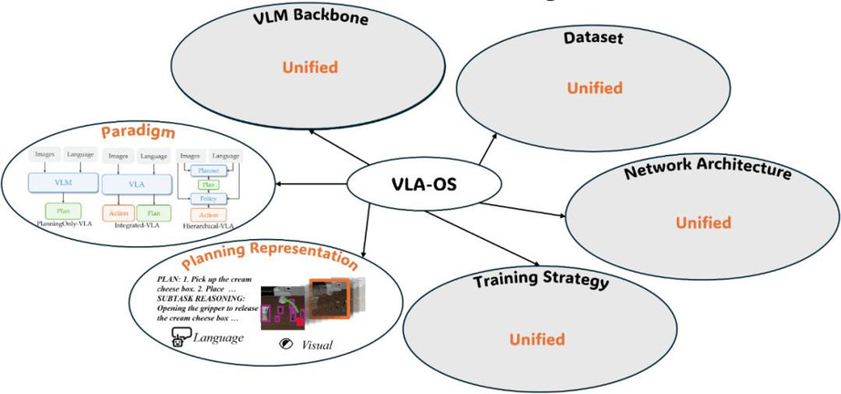 图 6 VLA-OS 将对其他因素进行统一,使用控制变量的方法研究范式和表征