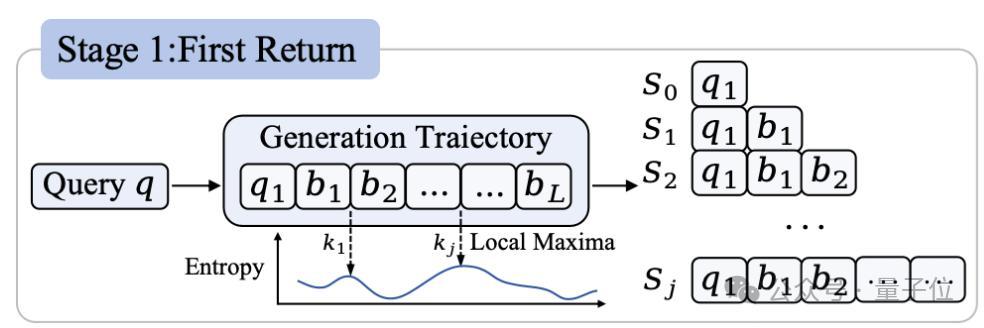 在此基础上,计算基准路径中每个token的生成熵,筛选出top-n个高熵token作为关键决策点。