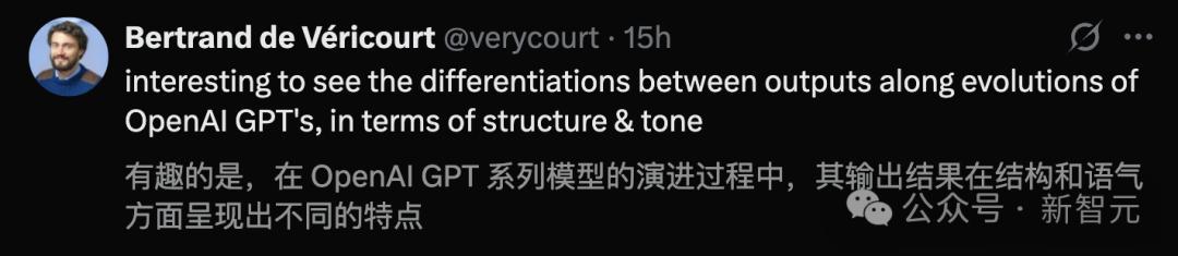 数据科学家Bertrand de Véricourt总结道,GPT系模型在演进过程中,其输出结果在结构和语言方面,各有不同。