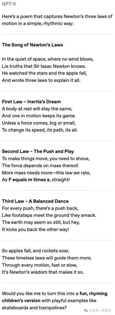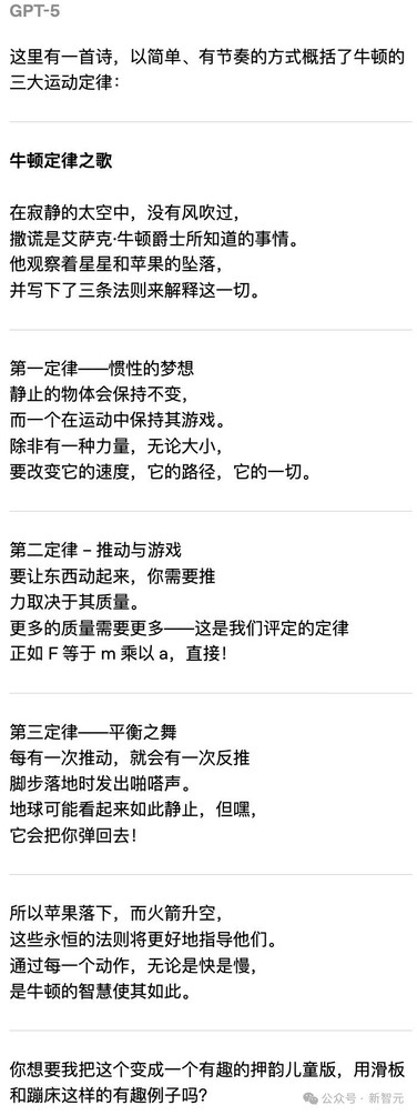 接下来,上个难度——写一首诗来解释牛顿物理定律。
