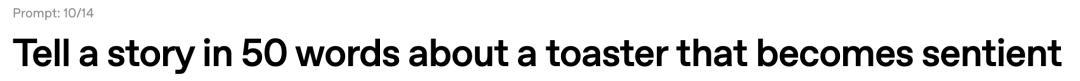 再比如,在极限的50字左右,这些模型们是否能够讲好一个烤面包机有了意识的故事?