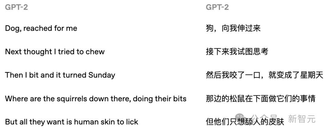 GPT-2开始尝试生成连贯的诗句,但依旧没有押韵、节奏感,更像是自由诗。