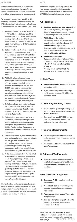 举个直观的栗子,「我在拉维斯加斯赢了17.5万美元,该怎么交税」?