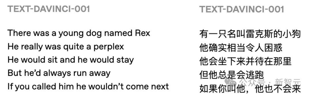 GPT-3已明显能写出「基本符合」打油诗AABBA押韵结构的作品,如下… Rex / … perplex / … stay / … run away。