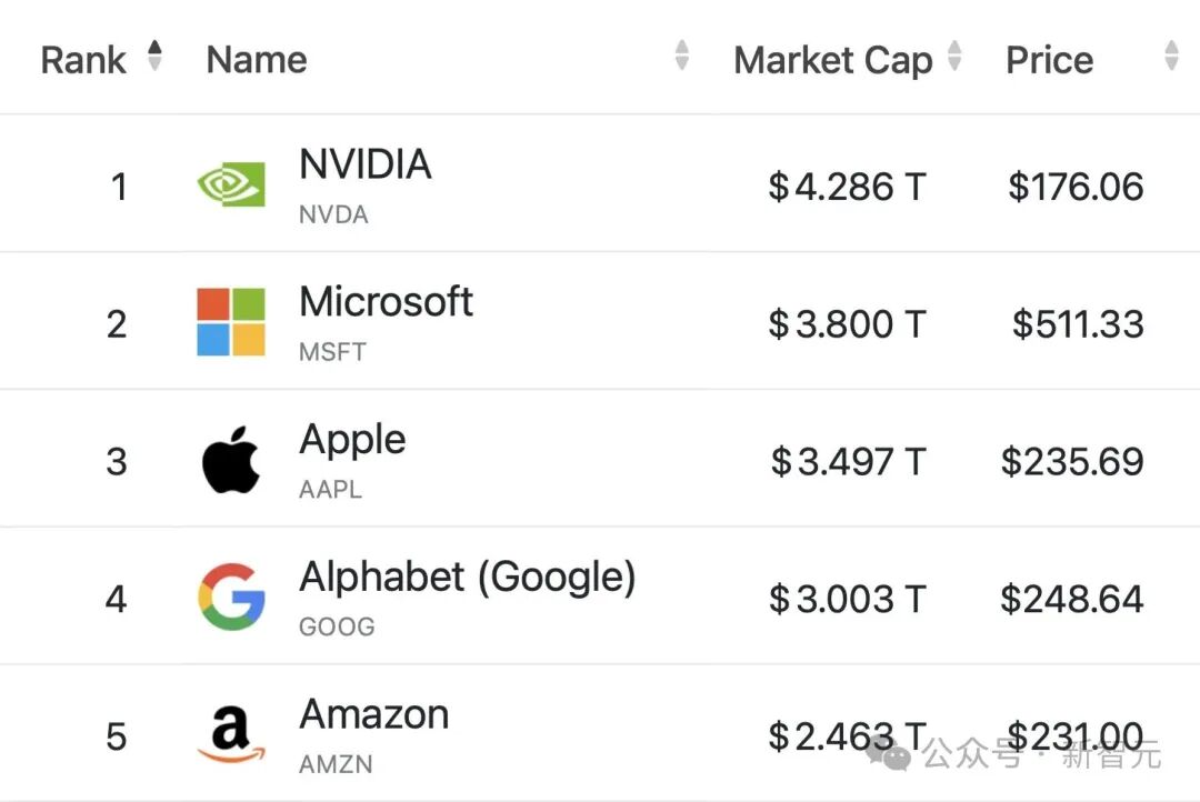 第三家是英伟达,于2024年6月加入3万亿美元俱乐部。