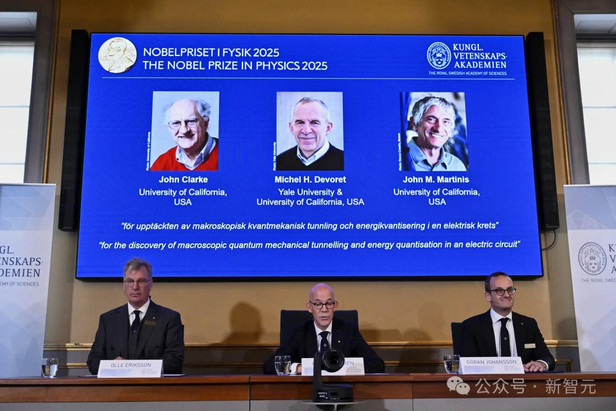 【新智元导读】刚刚,2025年诺贝尔物理学奖公布。今年物理学奖没有颁给AI领域,而是量子力学。科学家John Clarke、Michel H. Devoret和John M. Martinis三人获奖,以表彰他们「发现电路中的宏观量子力学隧道效应和能量量子化」。