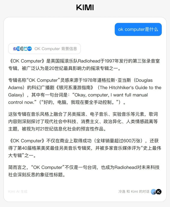 「OK Computer」有何来历?我问了下Kimi。