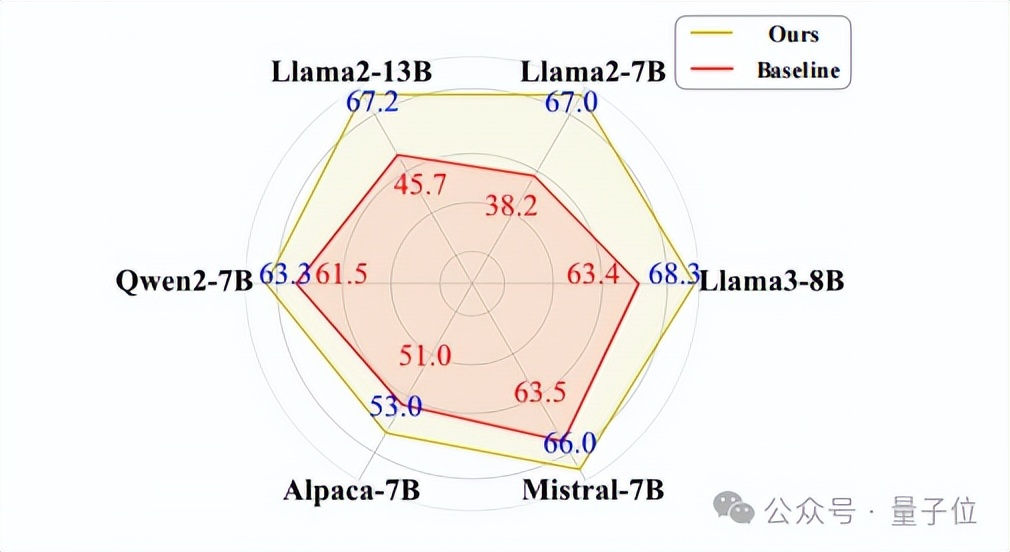 不仅如此,该方法在不同类型、大小的模型上均表现出显著增益,如Llama2-7B, Llama2-13B, Qwen2-7B, Alpaca-7B和Mistral-7B等。