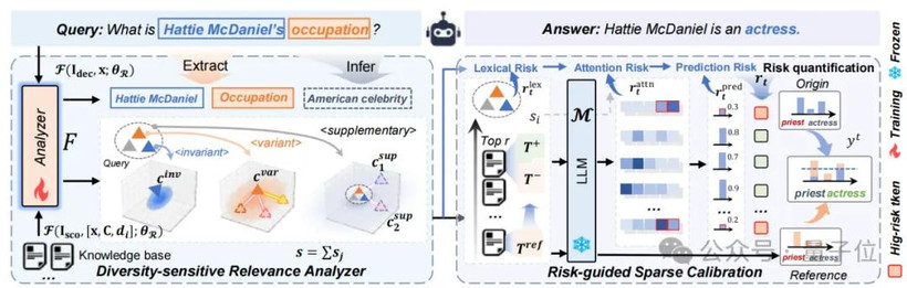 即使有了更精准的检索,生成阶段仍然可能“被干扰”。Risk-guided Sparse Calibration的设计灵感来自“风险控制”:它会实时监控每个生成token的“被误导风险”,并在必要时进行解码校准。