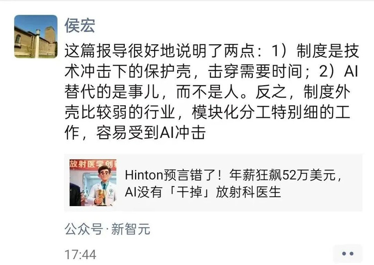 很有意思的点是,我写这篇文章的时候看到侯老师转发了下面的文章: