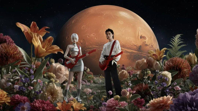 另外,还有一个更潮、更有意思的玩法就是,恩雅吉他(Enya Music)和京东一起创造出一个符合其年轻、赛博、富有创造力品牌调性的数字人代言人 Aura。从视频来看,Aura 不仅可以生成准确自然的手部弹吉他细节,还可以在科幻空间飞天遁地,放开品牌诠释的视觉想象。作为品牌完全拥有的商业化 IP,Aura 可以被深度、长久、且无限制地运用于各种宣传物料和互动场景中。