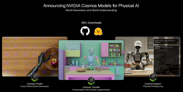 为了应对物理AI各种各样的一些挑战,为了更好能够去测试、验证、训练模型,英伟达今年年初开源了Cosmos世界基础模型。