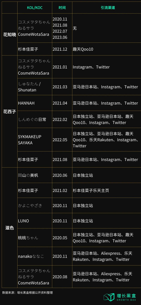 我们发现,对比花西子、滋色等同时期进入日本的其他国产美妆品牌来说,花知晓的营销投放力度明显较低,更倚重博主和用户的自发传播。