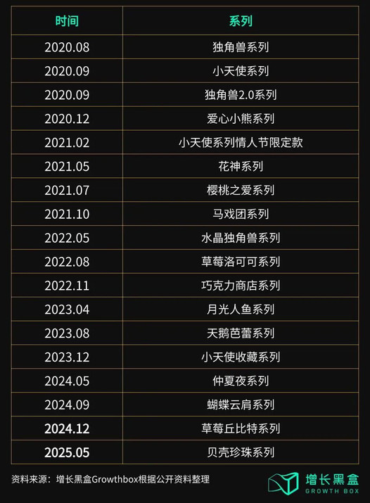 高频的推新频率一直延续至今,2022.08-2023.08周期内,花知晓接连推出了草莓洛可可系列、巧克力商店系列、月光人鱼系列和天鹅芭蕾系列等热门系列,其中草莓洛可可系列尤为出圈,也是圈粉Jeffery Star的产品。