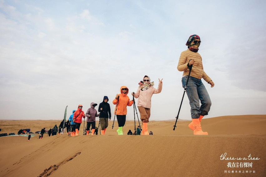 缦品牌「阿拉善未来之林计划」,业主行走在沙漠中
