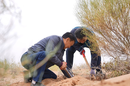 要改变这里的恶劣环境,只能种树。但在沙漠种一棵树的难度,至少是城市公园的10倍以上。不过,只要一棵树活下来,就意味着黄沙中多了一片小小的绿洲,随时间而叠加的正向力量又增加了一份。