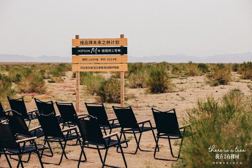 2024年至2025年,每年春天来临之后,合生缦品牌以业主的名义在阿拉善的沙漠中种下1000亩梭梭树,按照正常的折损率计算,最起码每年有4万棵树能活下来,变成一种与沙漠共生的力量,成为保障这里的居民和动物生存质量的屏障。