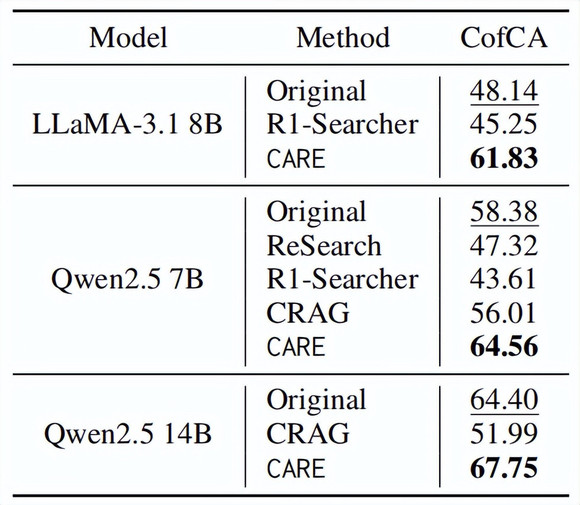 CARE 的成功不仅体现在最终答案的准确性上。通过在 HotpotQA 基准上对模型检索出的事实进行直接评估,研究团队发现: