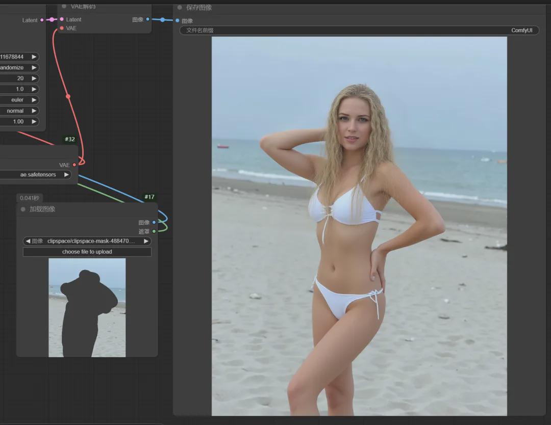 之后填写关键词,把人物换成金发碧眼的泳装女郎,开始生成: